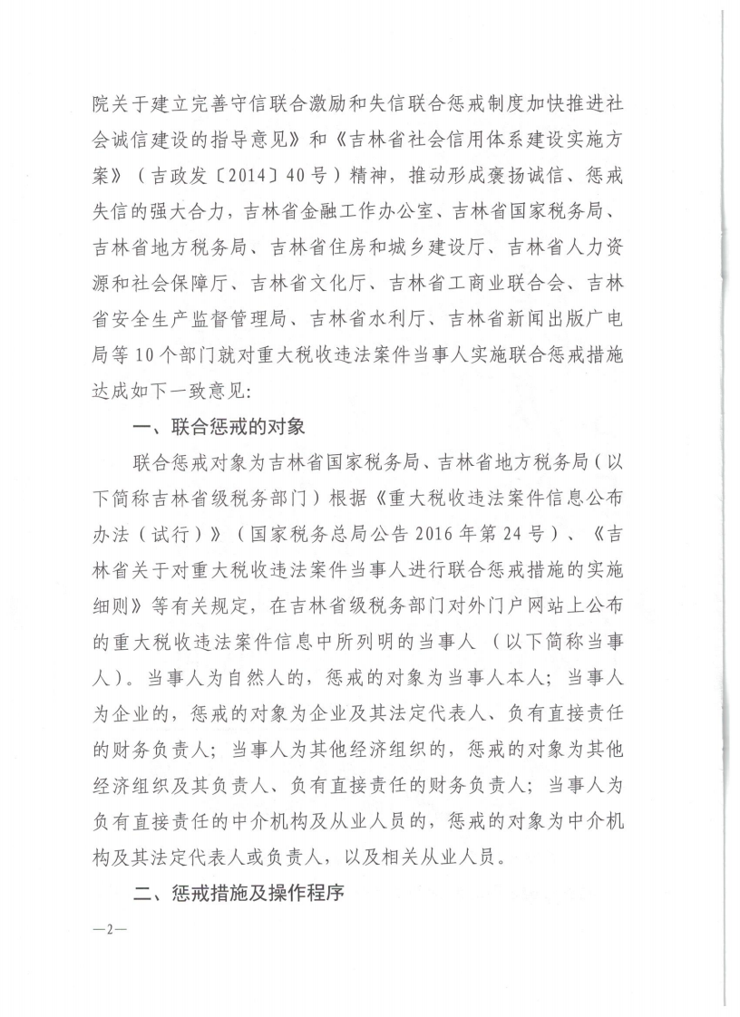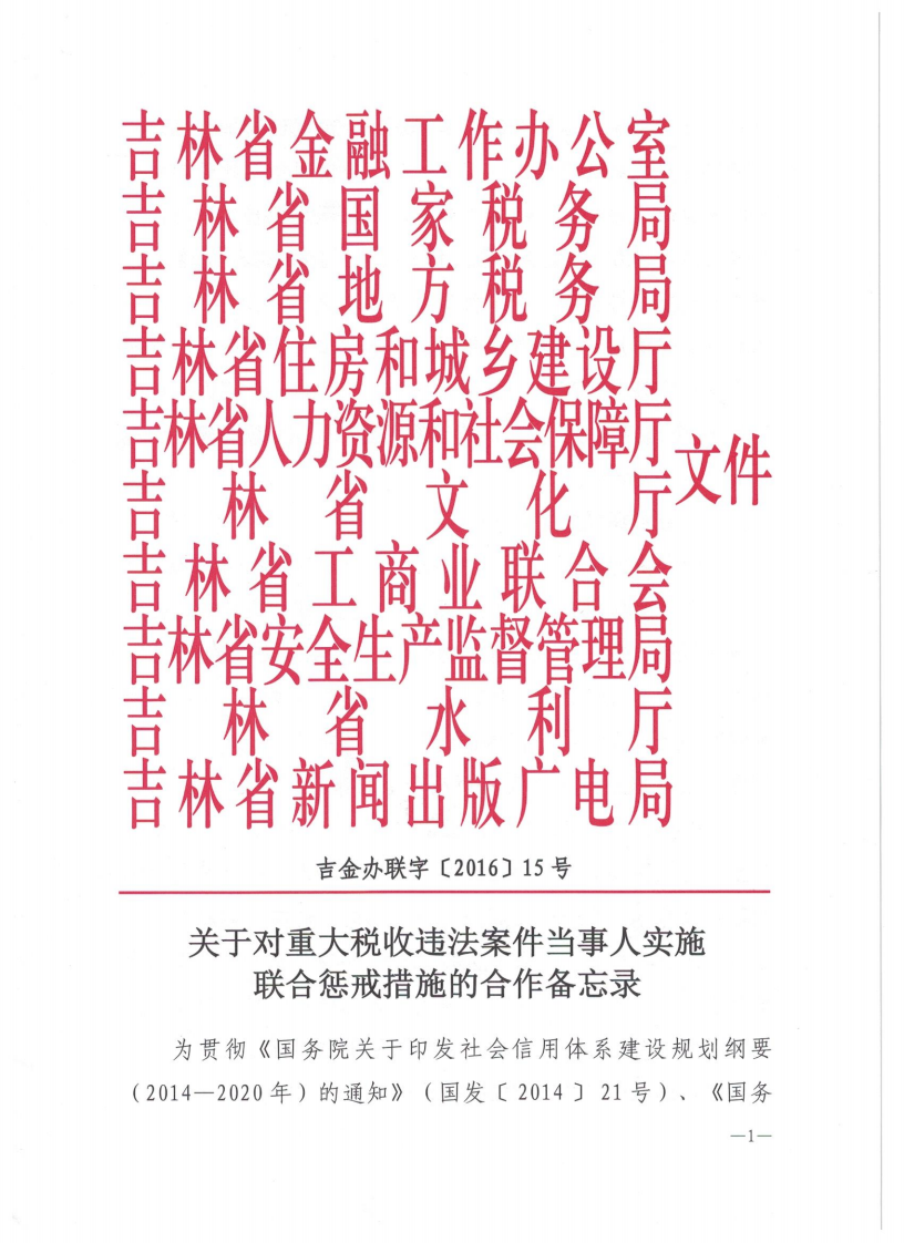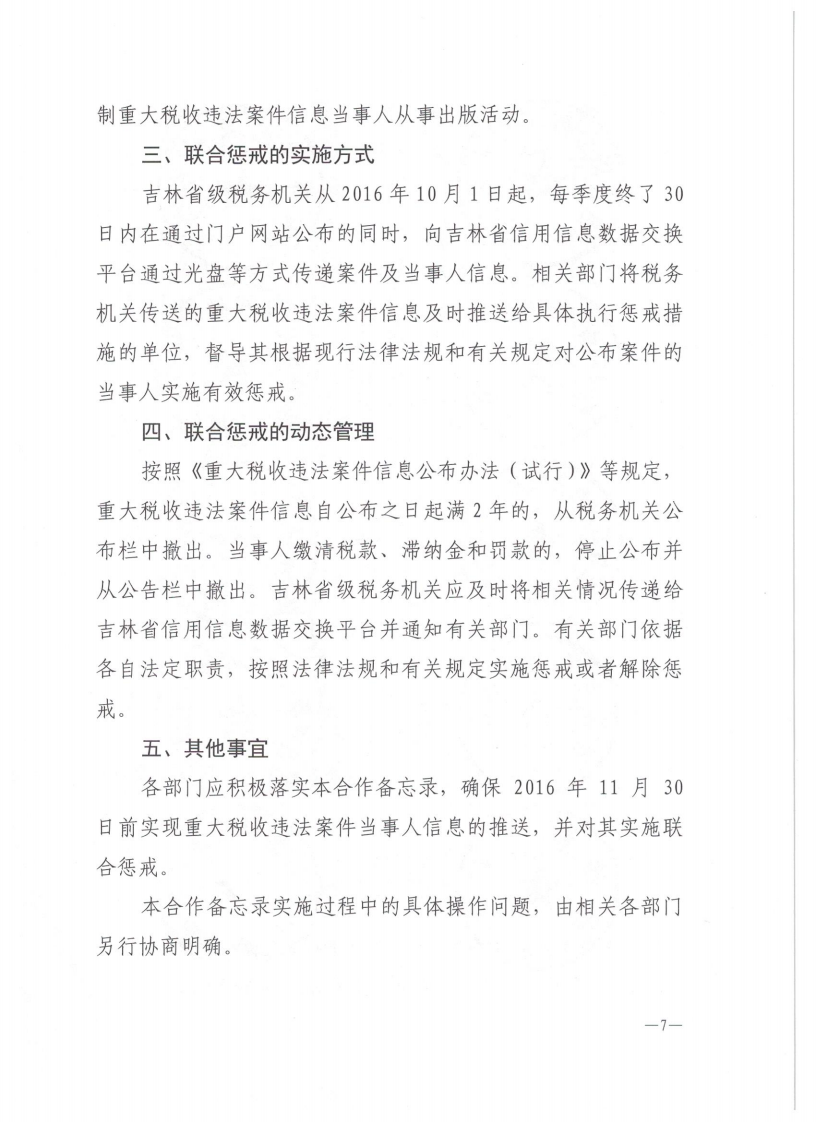 关于对重大税收违法案件当事人实施联合惩戒措施的合作备忘录