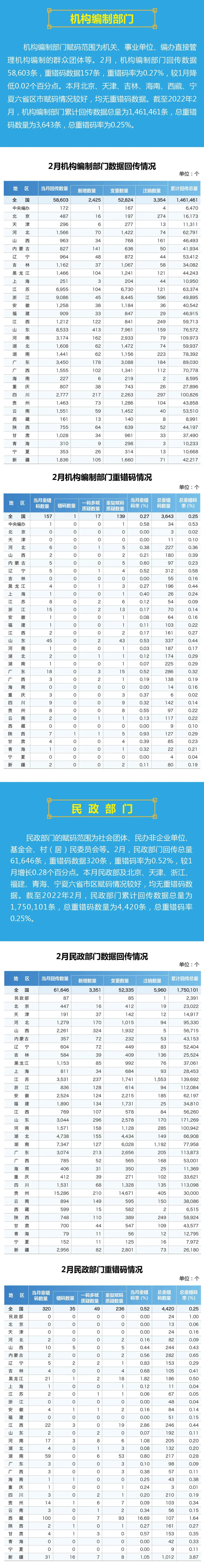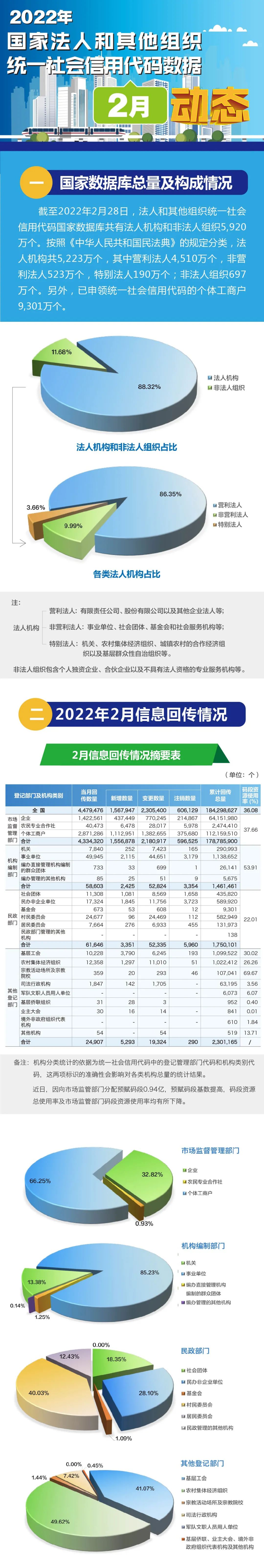 【图解】2022年国家法人和其他组织统一社会信用代码数据2月动态