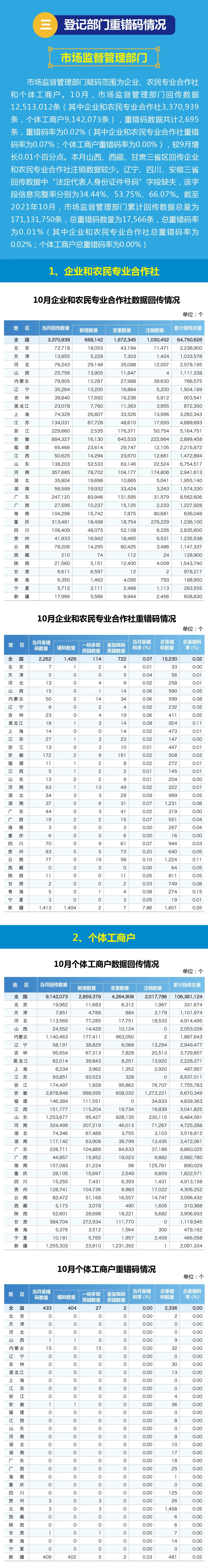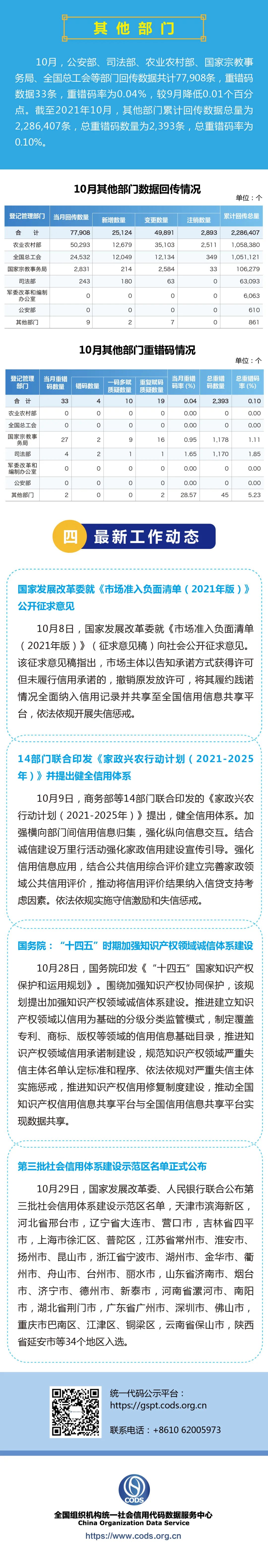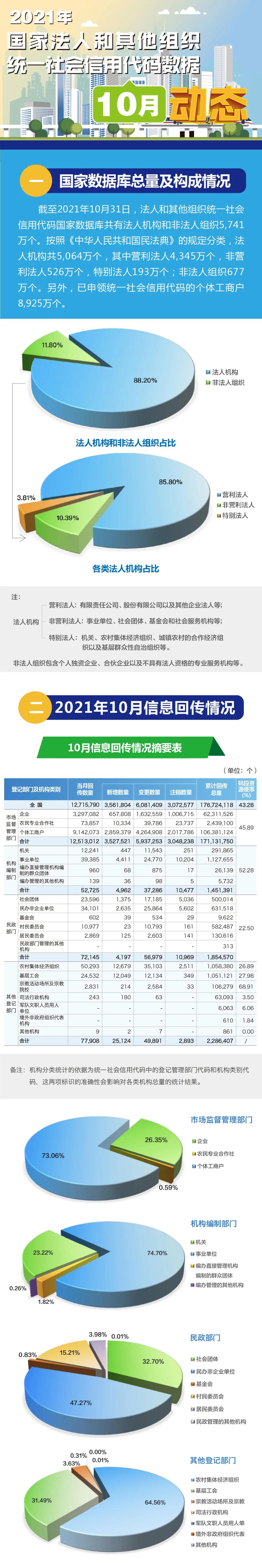 【图解信用】2021年国家法人和其他组织统一社会信用代码数据10月动态