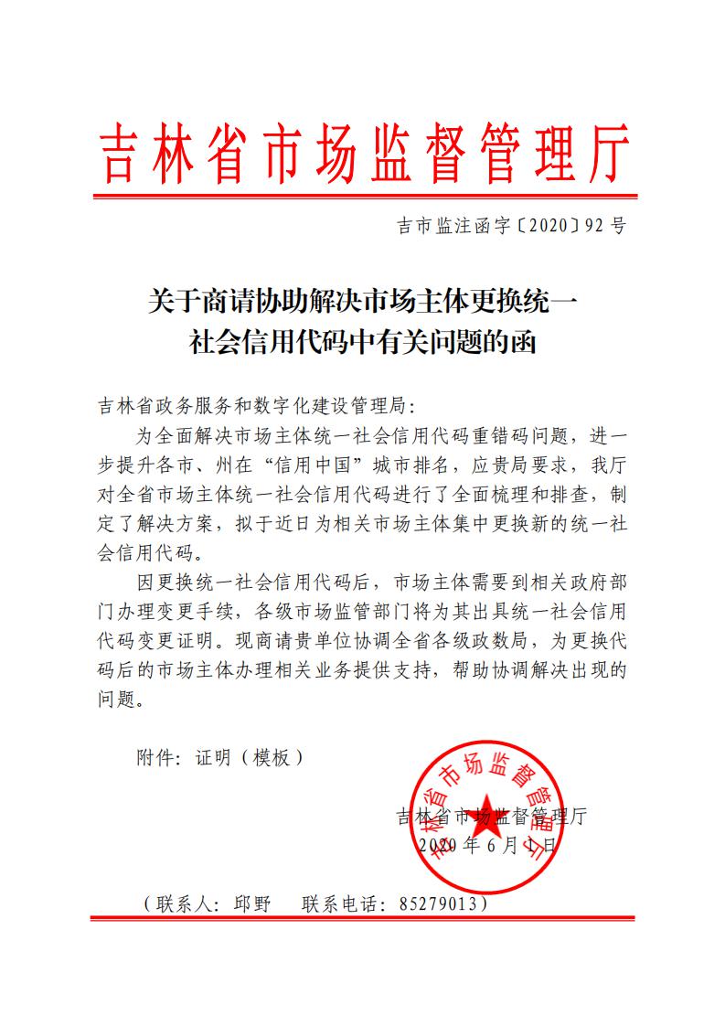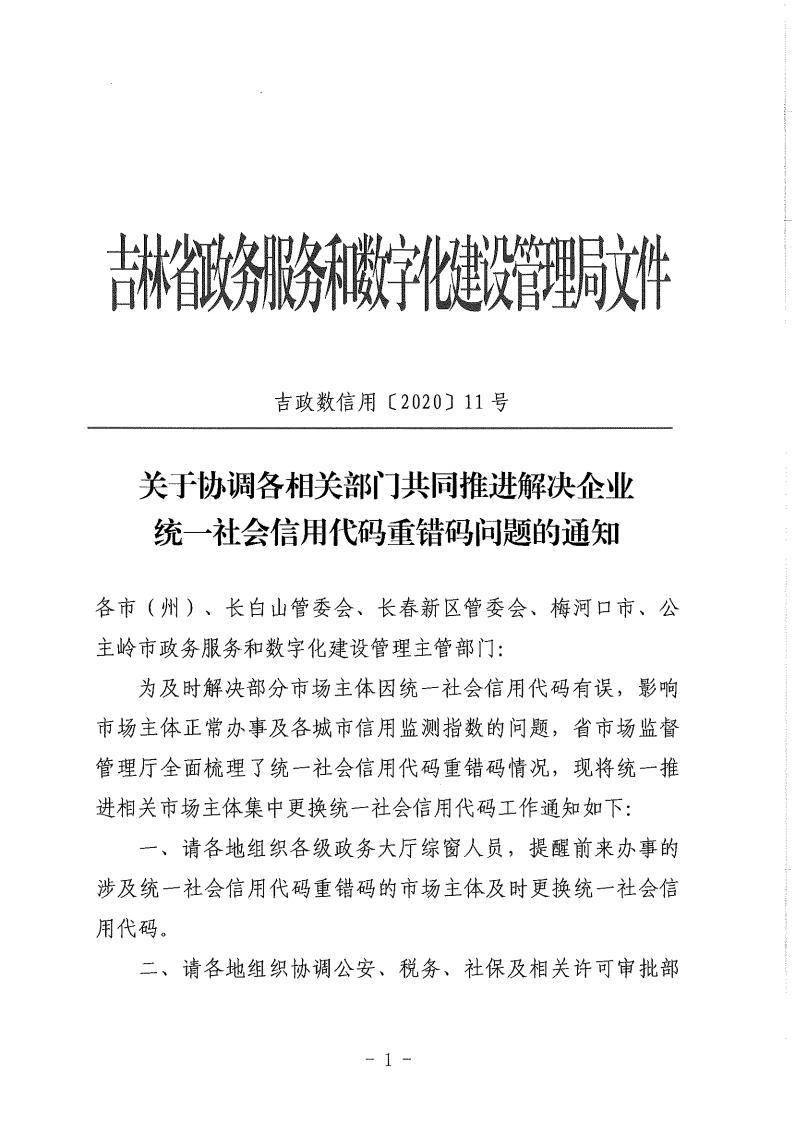 关于协调各相关部门共同推进解决企业统一社会信用代码重错码问题的通知