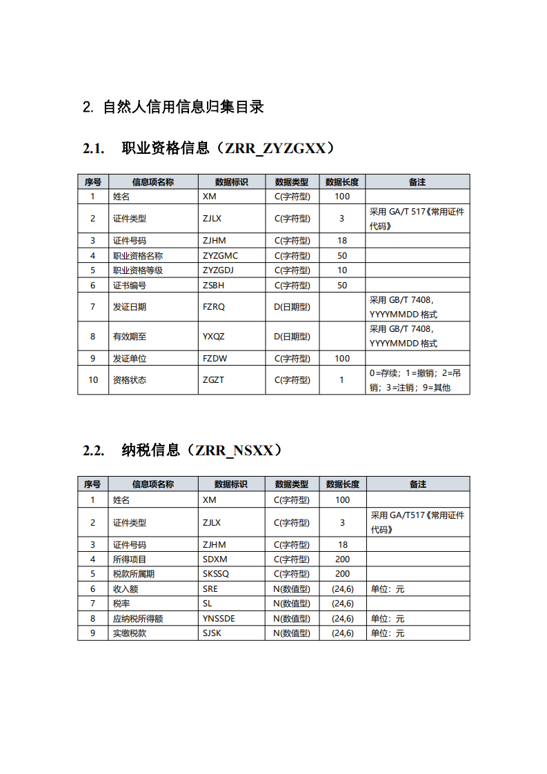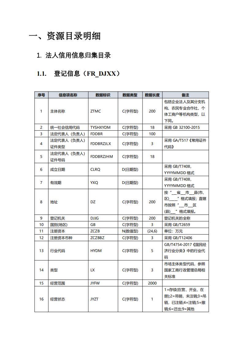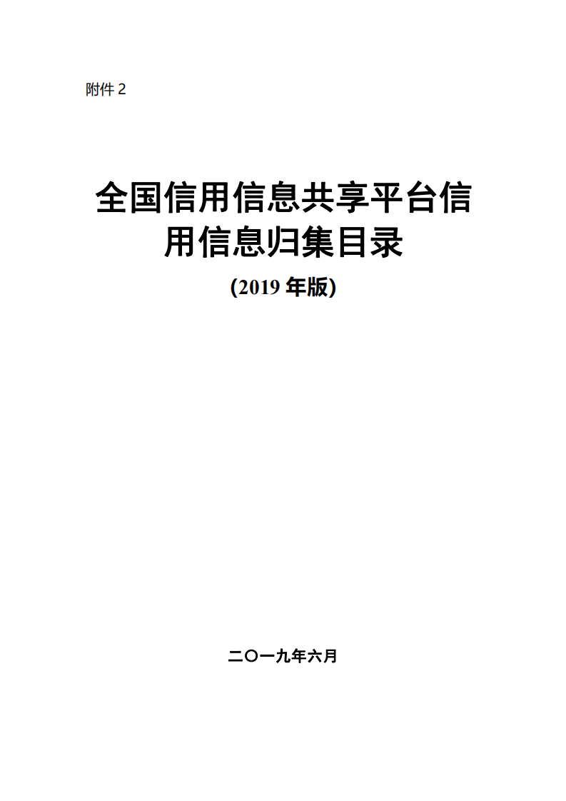 全国信用信息共享平台信 用信息归集目录 (2019 年版)