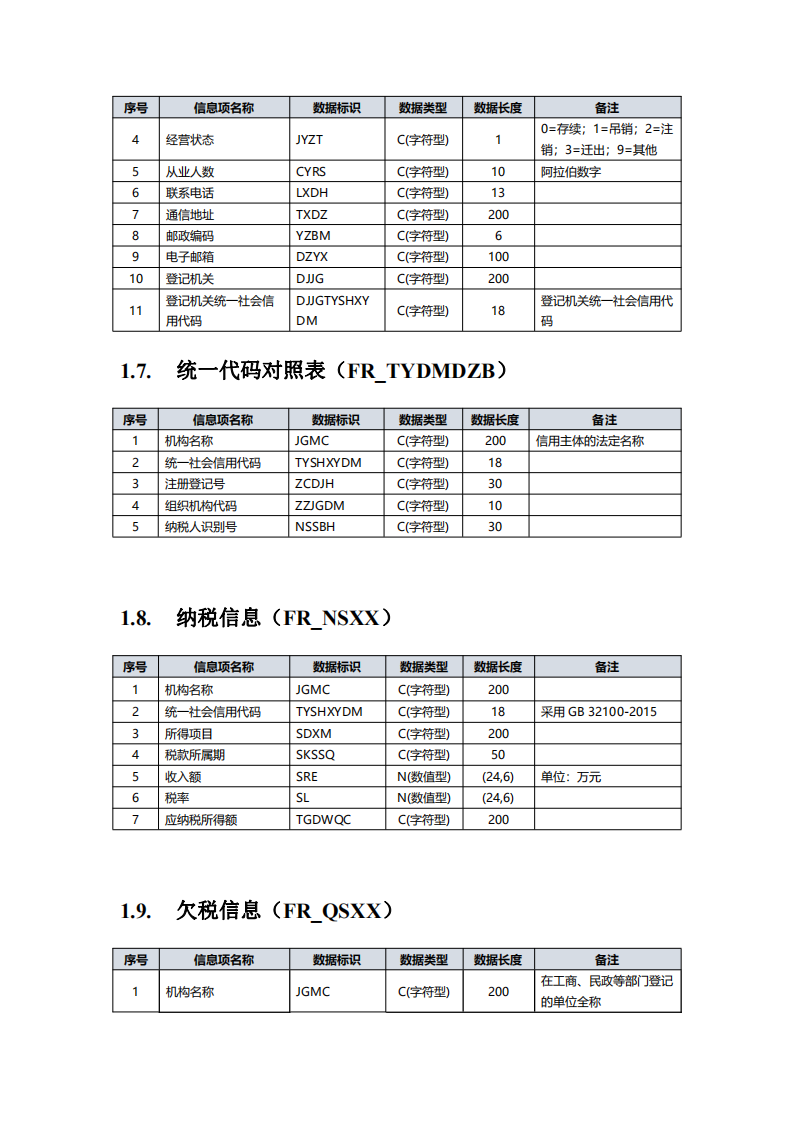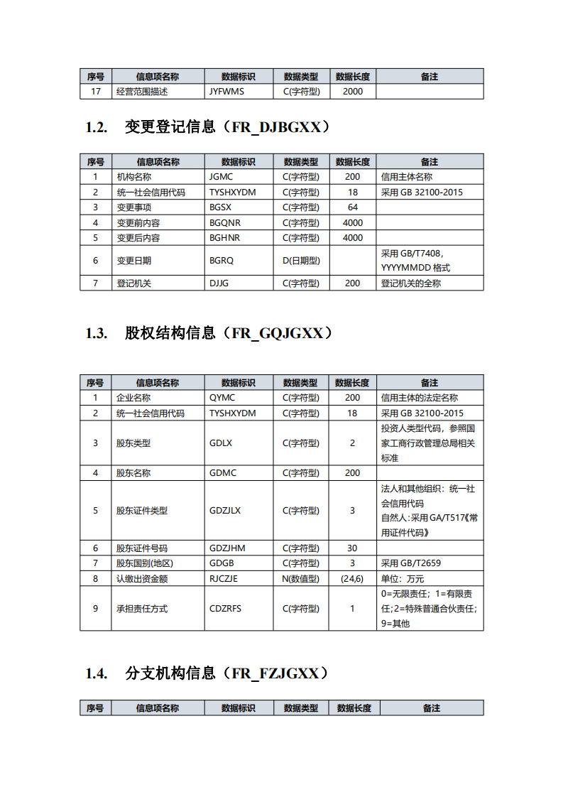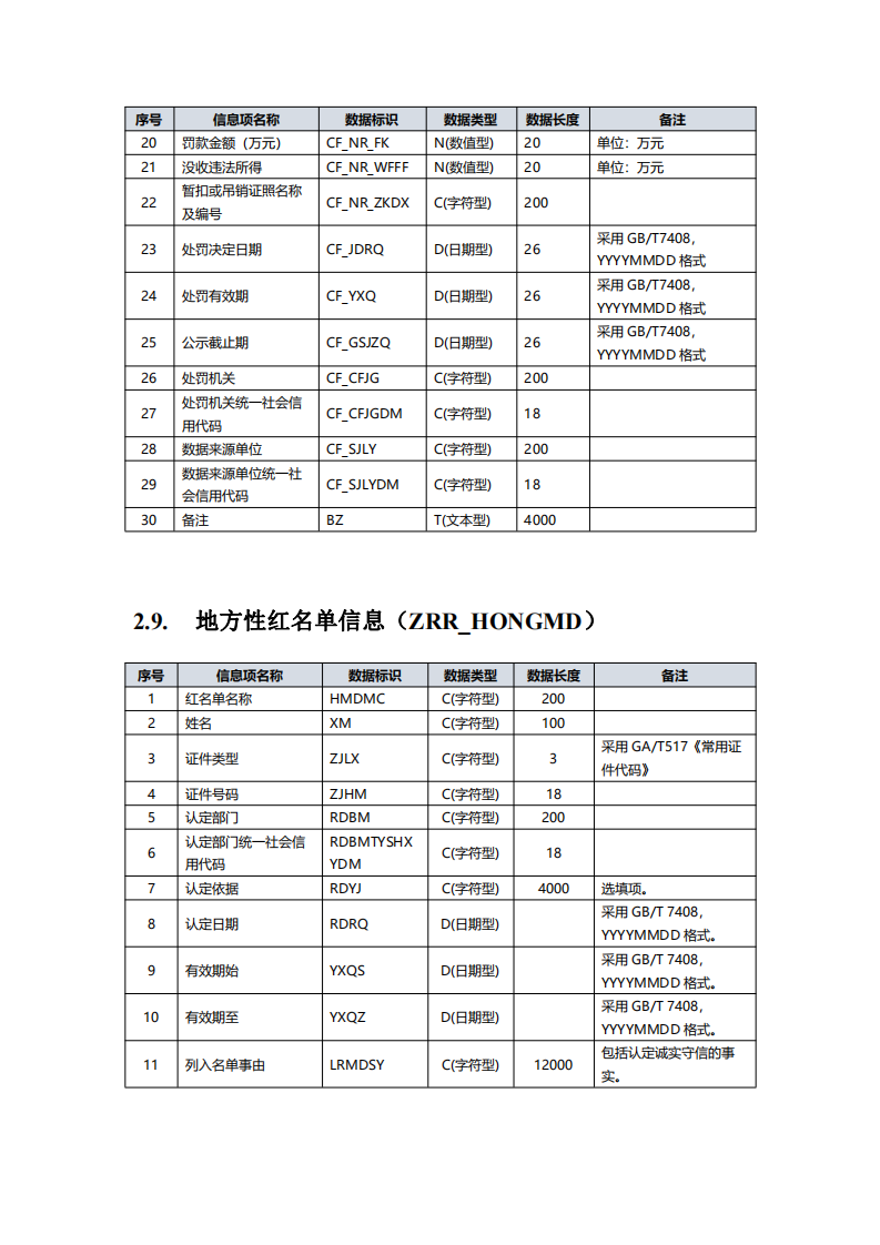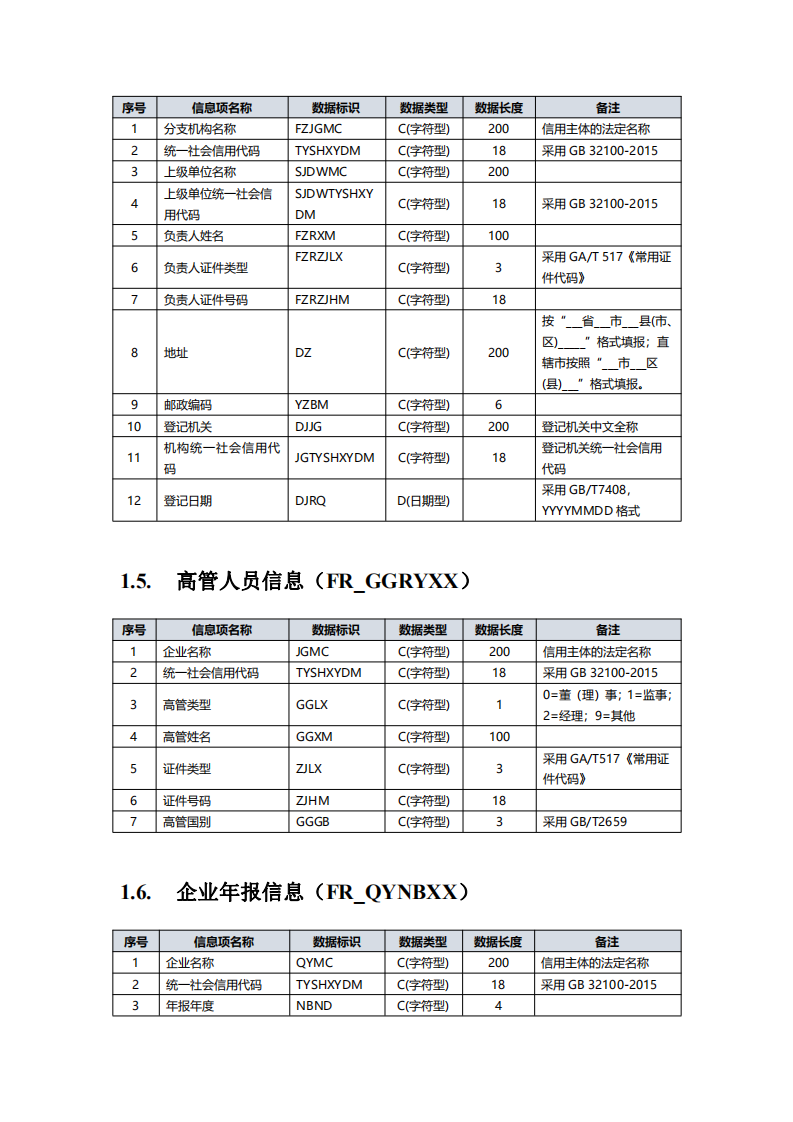 全国信用信息共享平台信 用信息归集目录 (2019 年版)